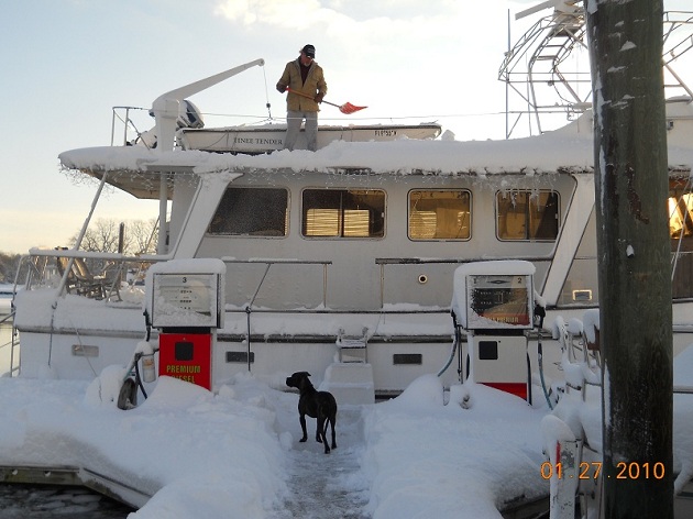 I live aboard a boat in Stamford, CT. It's been hot and balmy here, perfect summer weather. But five months ago, this is what I had to deal with.