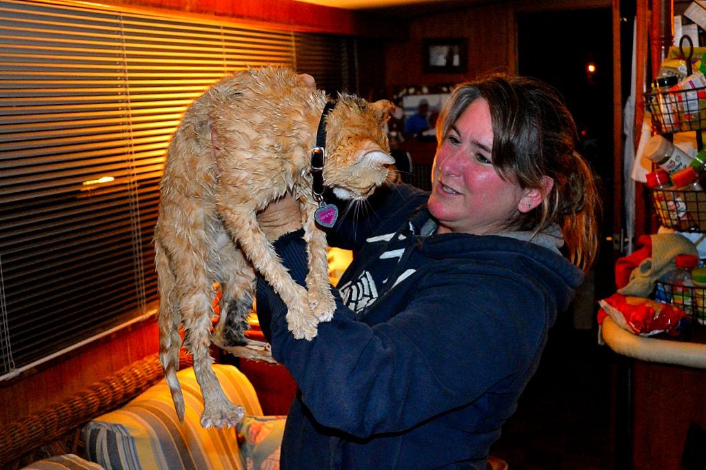 Dirty ertie fell off a neighbor's boat a couple of days ago when he got on it, surprising and scaring her. She galloped down to his swim platform and tried to make a right hand turn onto the dock. She didn't make it.