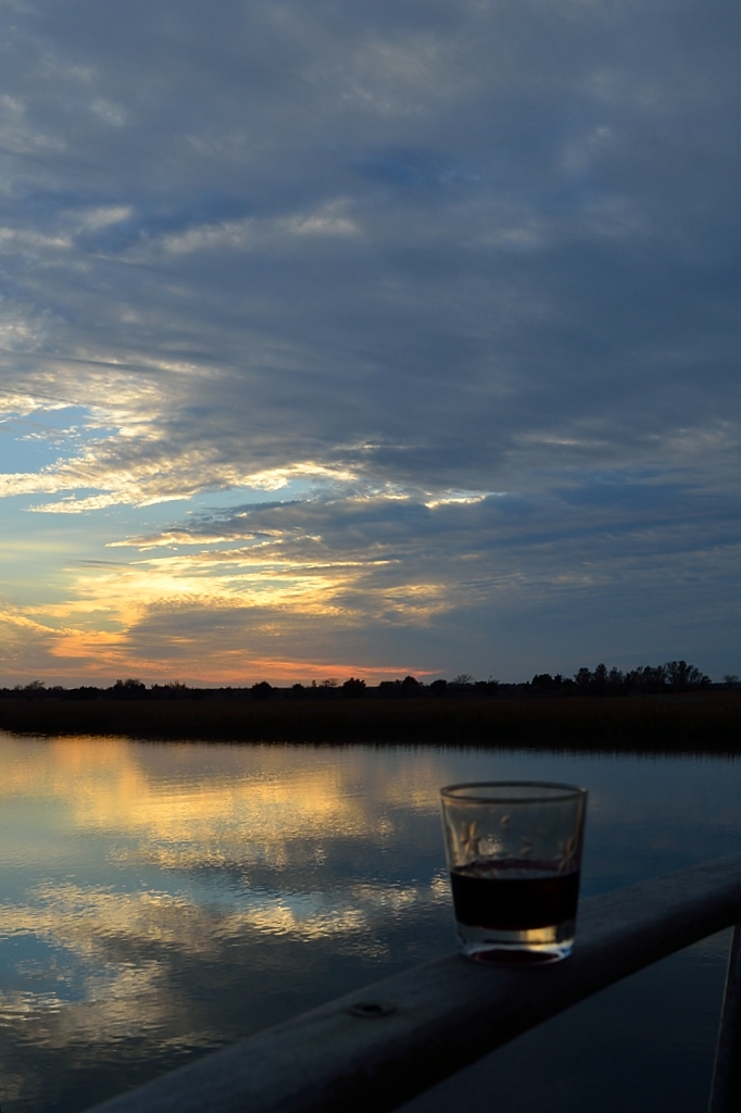 Last night, Pam and I were sitting on the aft deck with a glass of wine, enjoying the delightful Georgia weather and watching the sun set. What a great life. I love living on a boat. I'm really... thankful... THAT'S IT! Grab the camera!
