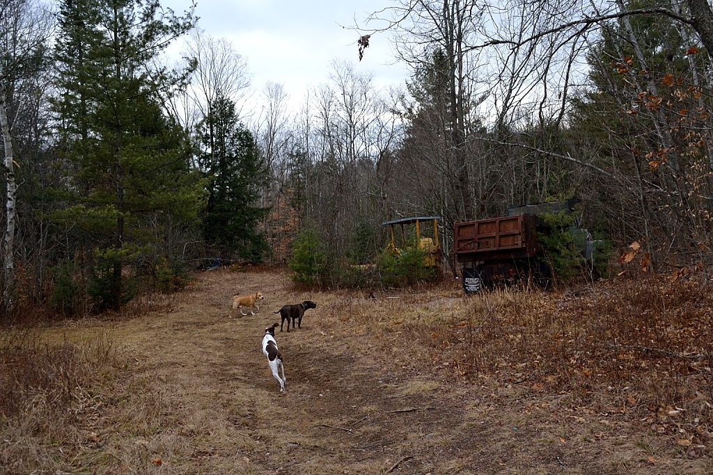 Bottom line is that she's insane. While the two pits like to run and all, Olivia runs full speed non-stop. She dives at them and runs away, repeatedly antagonizing them until they chase her. When the photo of the pits moping on the road was taken, Olivia was still galloping all over the woods.