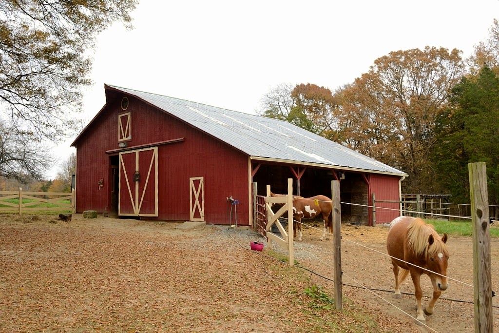We just arrived in Florida after cruising down from upstate NY. My wife led the way, towing her horse with the Kia, with two of our dogs as passengers. I followed next in our 34' RV towing a trailer full of my mother-in-law's stuff, with our cat and one dog. My mother-in-law followed driving her Yaris with 7 of her little yappy dogs. We took six days to make the trip, stopping often so it wouldn't be as stressful on the horse. So where do we stay with all these critters? Ranches and farms, like this one in Charlotte NC.